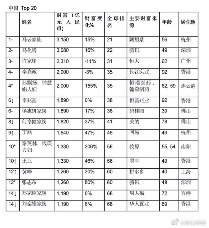胡润全球富豪榜:马云再次登顶中国首富
