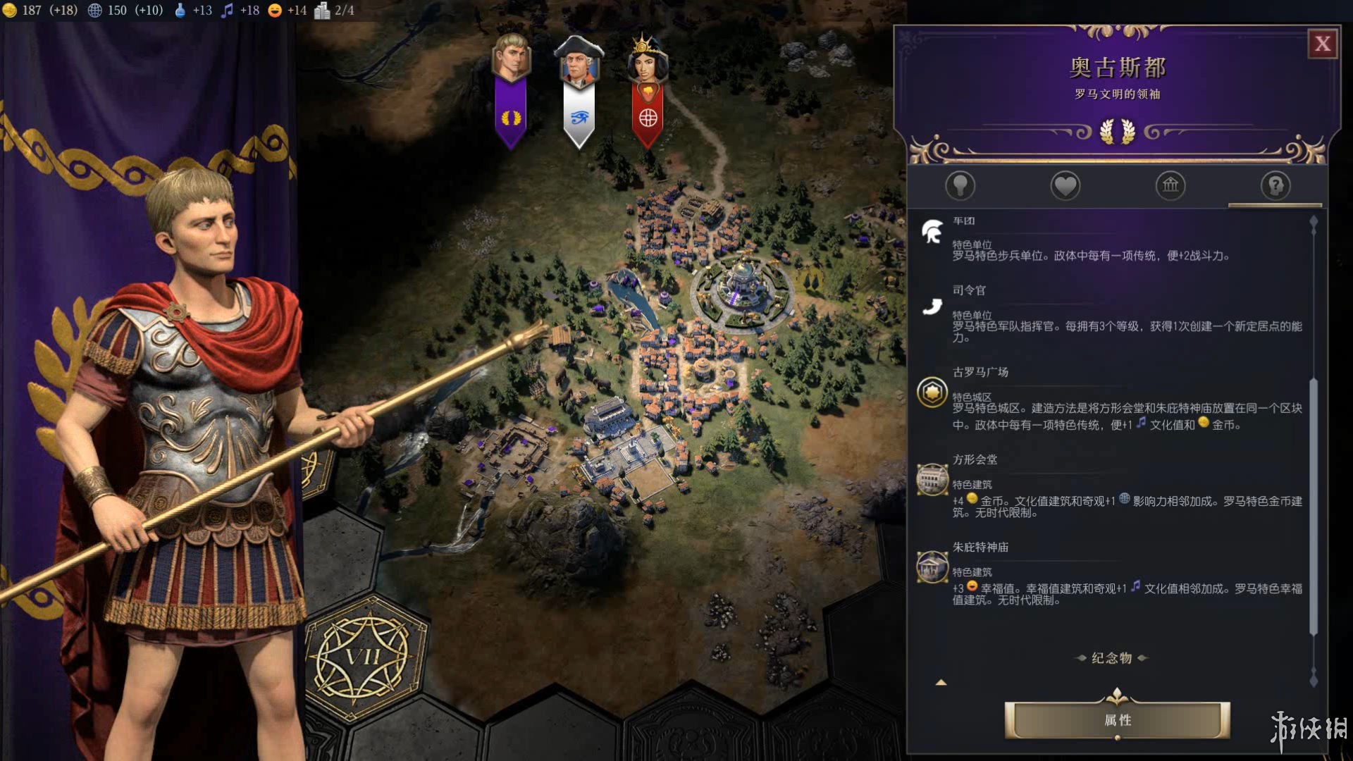 A:在《文明7》中,我们引入了两种全新的资源——影响力与幸福值,影响力将成为你处理外交事务的货币。如果想与他人谈判或者开战,玩家都需要消耗一定的影响力才能采取行动。