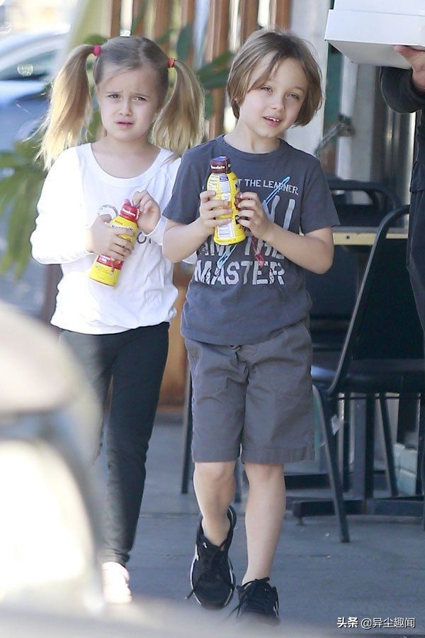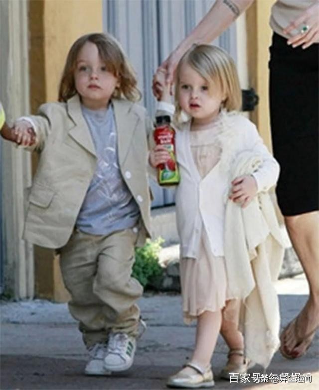 其中2008年出生的龙凤胎诺克斯和薇薇安完美遗传了爸妈的优良基因,两人都拥有灿烂的金发和白皙的皮肤,爸爸的明星基因在他们的小脸蛋上一览无遗!