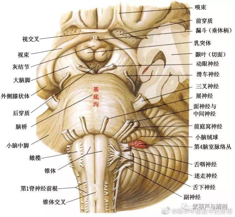 脑桥:上缘与中脑的大脑脚相接,下界借延髓脑桥沟与延髓分界;