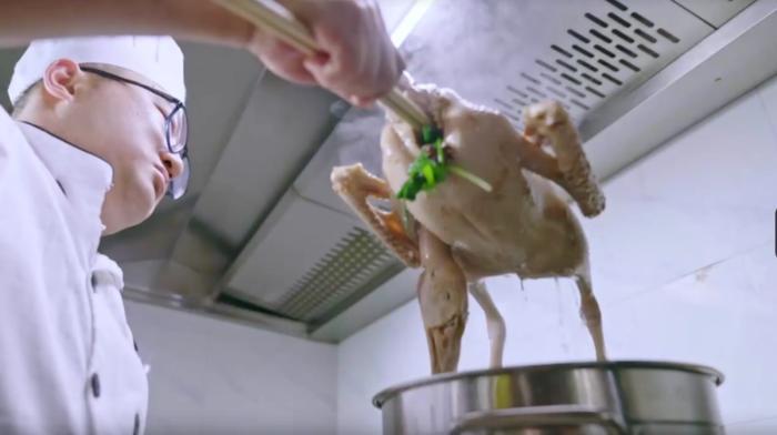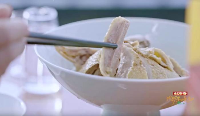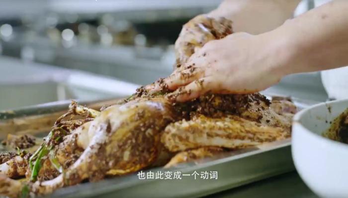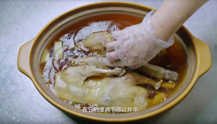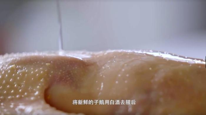在《诗歌里的美食》第三集里,老镇源饭店的老板姜啸波就完美再现了招牌菜品糟鹅,用陈年酒糟与酒、葱、姜、八角等香辛料充分融合发酵,制作成香喷喷的糟卤,让糟鹅在糟卤的浸润下升华。