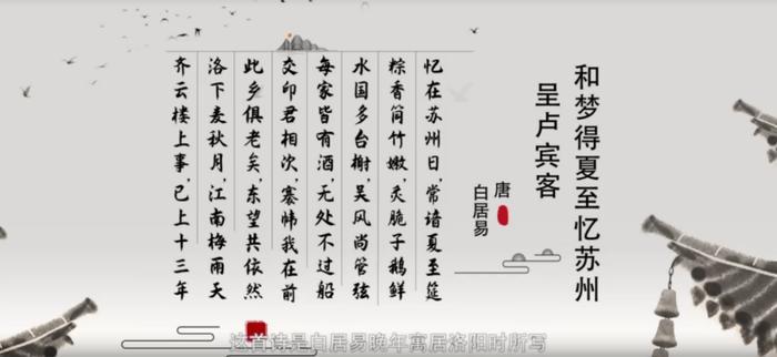 诗中的第一句“忆在苏州日,常谙夏至筵。粽香筒竹嫩,炙脆子鹅鲜”,白居易“吃货”的本性就暴露无遗了。从春游宴的“劝客酒”尝到晚春“吴樱桃”,应季而食的饮食理念,搭配上独属苏州的美食文化,让“吃货”白居易难以忘怀。