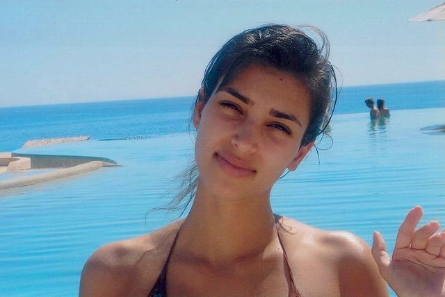 从照片看,坐在无边泳池中的金是素颜出镜,因为睫毛和眉毛都很浓密,当时的金真可以算是自带化妆效果的女孩了,她的美貌是毋庸置疑的,要不卡戴珊妈妈也不会“利用”她发家了。虽说是浓眉大眼,但当时的金还是给人以清新自然的感觉,和现在的那种“金属感”很是不同。