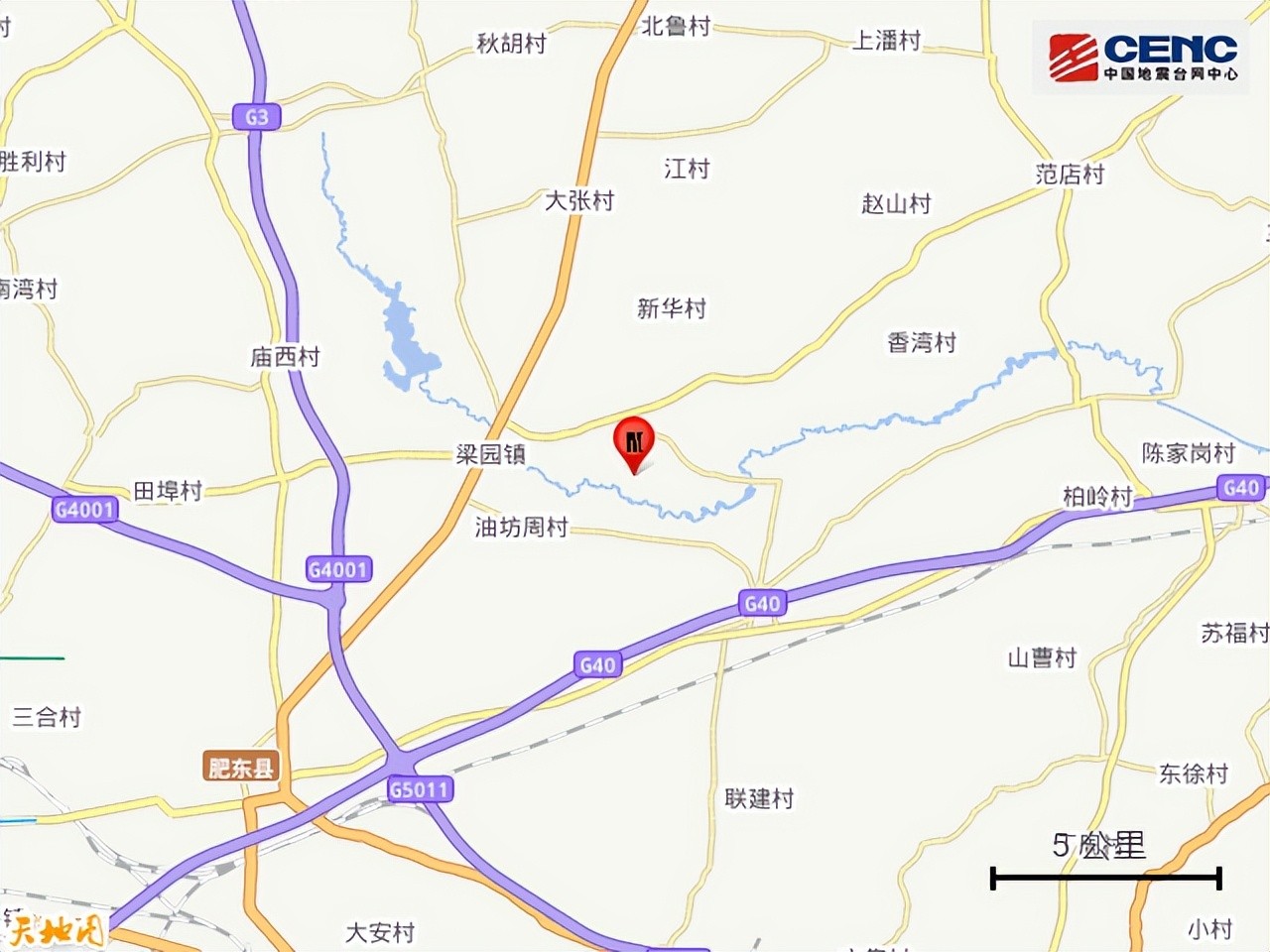 周边县城:震中距肥东县17公里、距瑶海区31公里、距庐阳区34公里、距包河区35公里、距蜀山区36公里,距合肥市38公里。