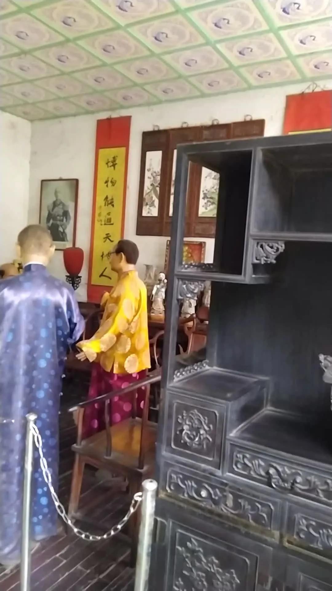 大家知道他们是连襟关系,两人关系非常密切。会客厅里展示了为蒋宋证婚情景的蜡像。邓小平也在解放战争时期的1948年来过这所大院,并在当时就嘱托地方政府要妥善保护这所大院。