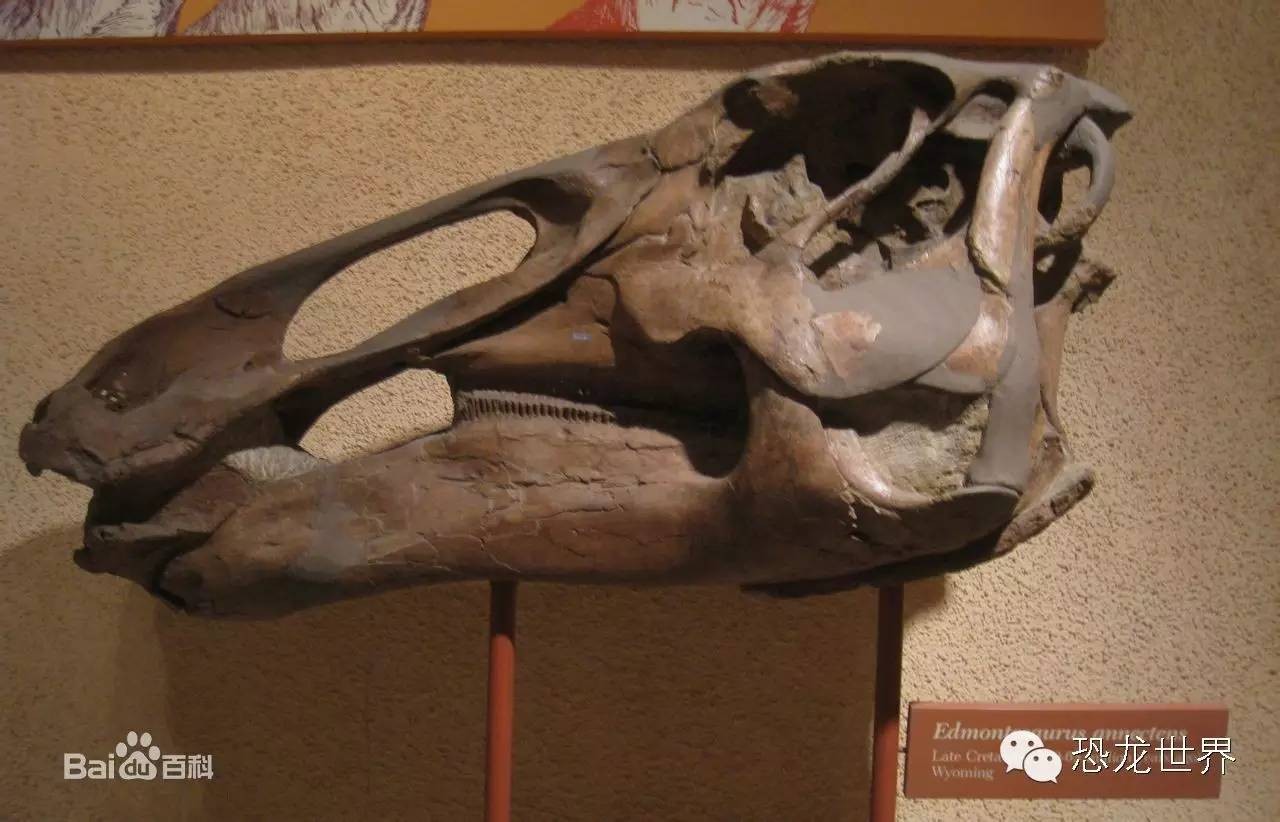 埃德蒙托龙有好几百颗牙齿,密密麻麻地排在上下颌上,它们被用来咀嚼针叶树叶子、各种果实和其他树叶。