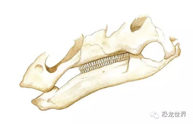 有些鸭嘴龙类恐龙嘴里有100多颗牙齿,所有的牙齿都密密麻麻地挤在口腔后部。