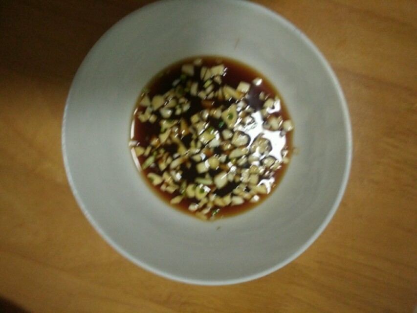 2:、生抽、蒜粒、醋、白糖一起放入碗中调匀