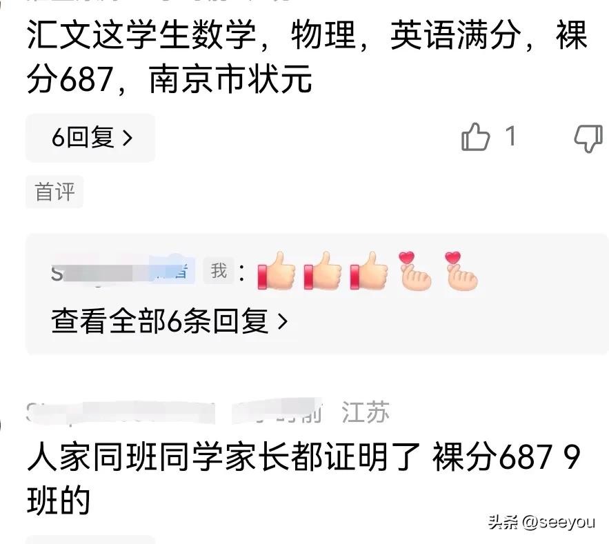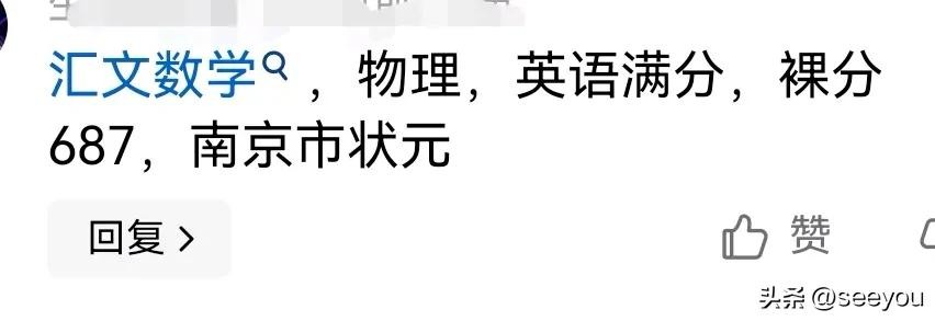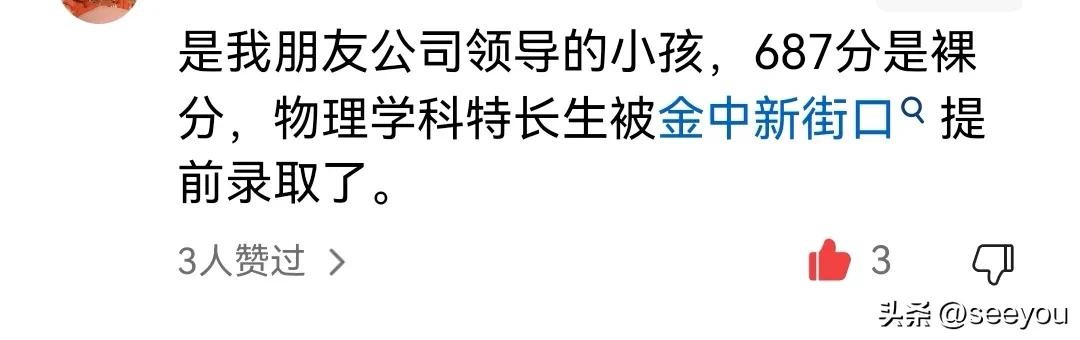 据网友说,2024南京中考状元687分,来自金陵汇文,已签约金中物理学科特长生。