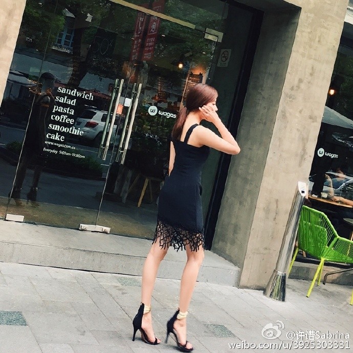 美女街拍:蕾丝小黑裙 有点hold不住