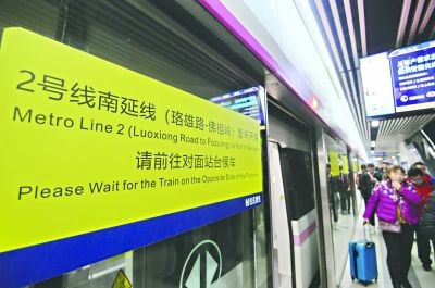 13日,在武汉地铁2号线列车上看到,地铁2号线南延线(珞雄路至佛祖岭)的10个站点信息已经出现在2号线地铁车厢LED屏上,虽然目前南沿线还未开通,但这些信息已经让武汉市民兴奋不已。
