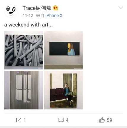 屈伟斌:关于艺术和音乐,那我觉得可能这些是我在生活当中比较容易感受到美好信息的来源吧,所以其实我在微博里面也没有刻意去分享什么音乐艺术。我初衷其实是跟大家分享我生活中看到的一些美好舒服的事情。正巧我自己的一些平常的生活更多是通过艺术音乐这些东西去获得这种美好的。