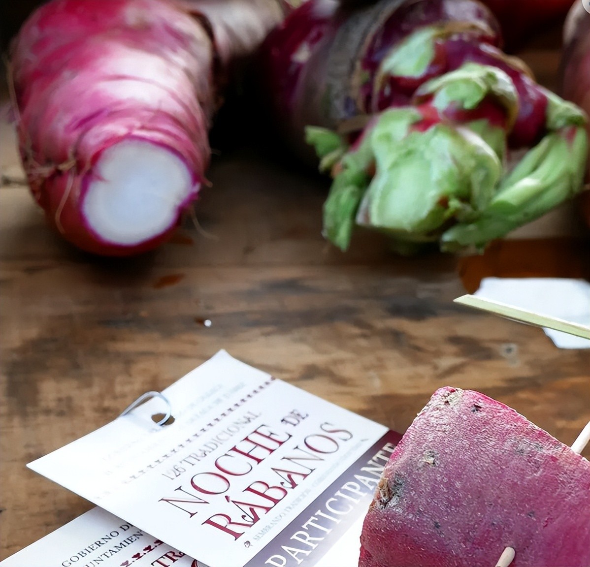 在墨西哥瓦哈卡州,为“萝卜之夜”(La Noche de Rabanos)种植的萝卜与墨西哥大多数墨西哥卷饼餐厅餐桌上常见的小而薄、红白相间的萝卜片完全不同。