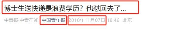 2. 中国青年报,2018-11-07,《博士生送快递是浪费学历?他怼回去了…》