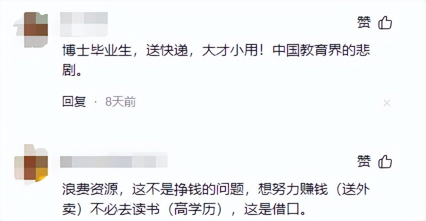 在他们眼中,好好一个博士生,不去当高级精英为国贡献,反而要在这里送快递浪费时间。
