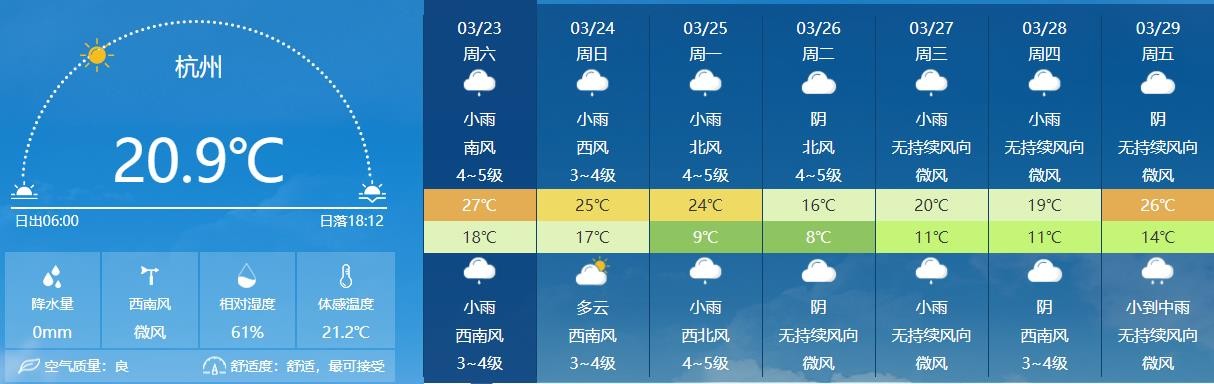 小雨细细!明天24号杭州天气预报揭晓:持续小雨,天气微凉