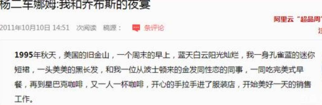 在杨二车娜姆一篇名为《我和乔布斯的夜宴》的文章中,杨二车娜姆就讲述了与一位男子相识的情景。这位男子,就是拉里•埃里森。