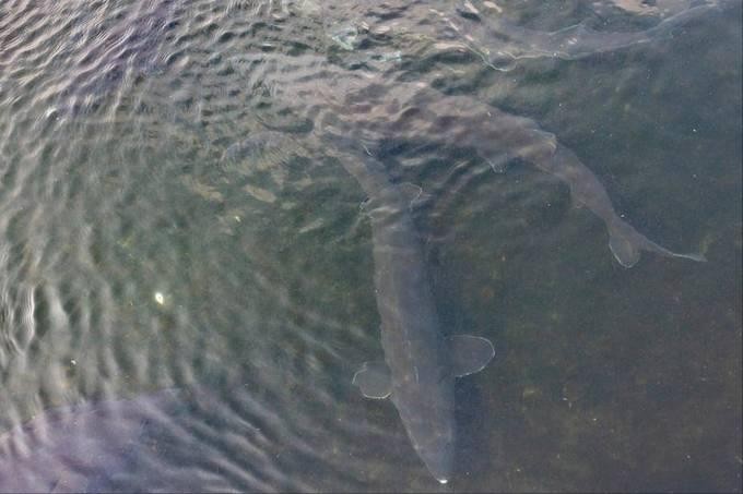 西伯利亚鲟在形态上呈现长纺锤形,逐渐朝尾部变细。