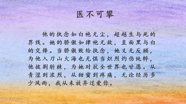 今天介绍的3本现言,风格各异,男主或女主是医生,喜欢主角是医生的小说吗?大家有喜欢的作者或小说嘛,欢迎评论区下方留言哈~