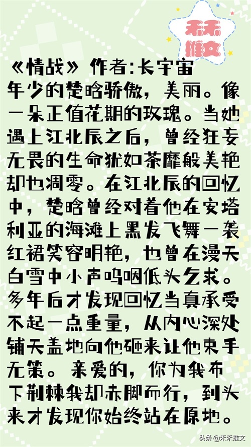 好了,今天禾禾就为小伙伴们推荐这几本好看的文章,关注禾禾!接下来禾禾会为大家继续推荐更多好看的文章。