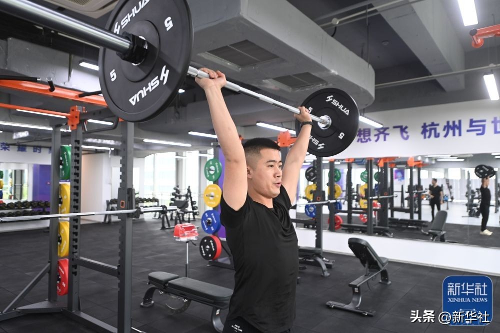 6月16日,杭州亚运村健身中心健身教练在综合器械区展示。据了解,健身中心集合了营养管理、体能康复、疲劳恢复、运动心理等各领域的专业教练,将根据运动员实际情况,为运动员提供赛事服务保障。
