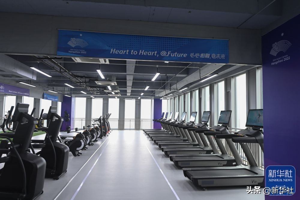 这是6月16日在杭州亚运村健身中心拍摄的健身器材。健身中心设置有氧运动区、爆发力训练区、拉伸恢复区、综合器械区及功能性训练区,可容纳约350名运动员同时使用。
