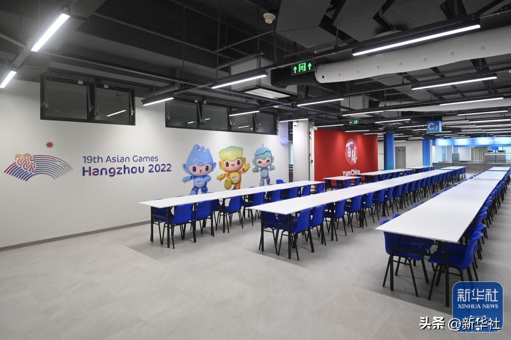 这是6月16日拍摄的杭州亚运村运动员餐厅内景。