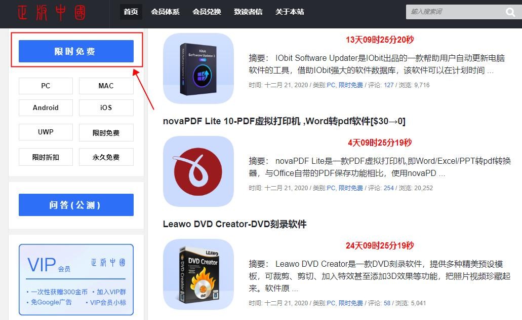 这个则是一个软件下载网站啦,而且全部都是正版的,只要你登录网站后,点击左上角的【限时免费】按钮,就可以快速下载到高质量的免费正版软件,千万不要错过哦!