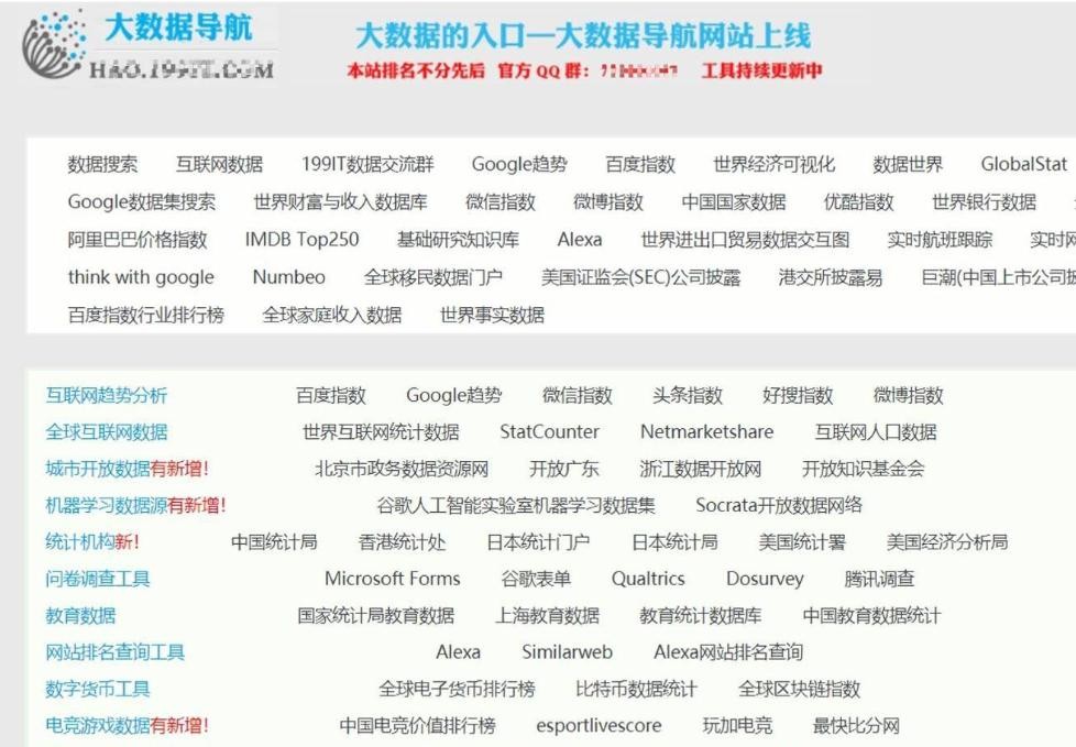 都说21世纪是数据的时代,但是去哪里找数据呢?其实只要你到大数据导航这个网站就可以找到各种类型的数据啦,包括互联网趋势、教育数据、移动应用监测和旅游行业等的数据,你都可以在这里找到!