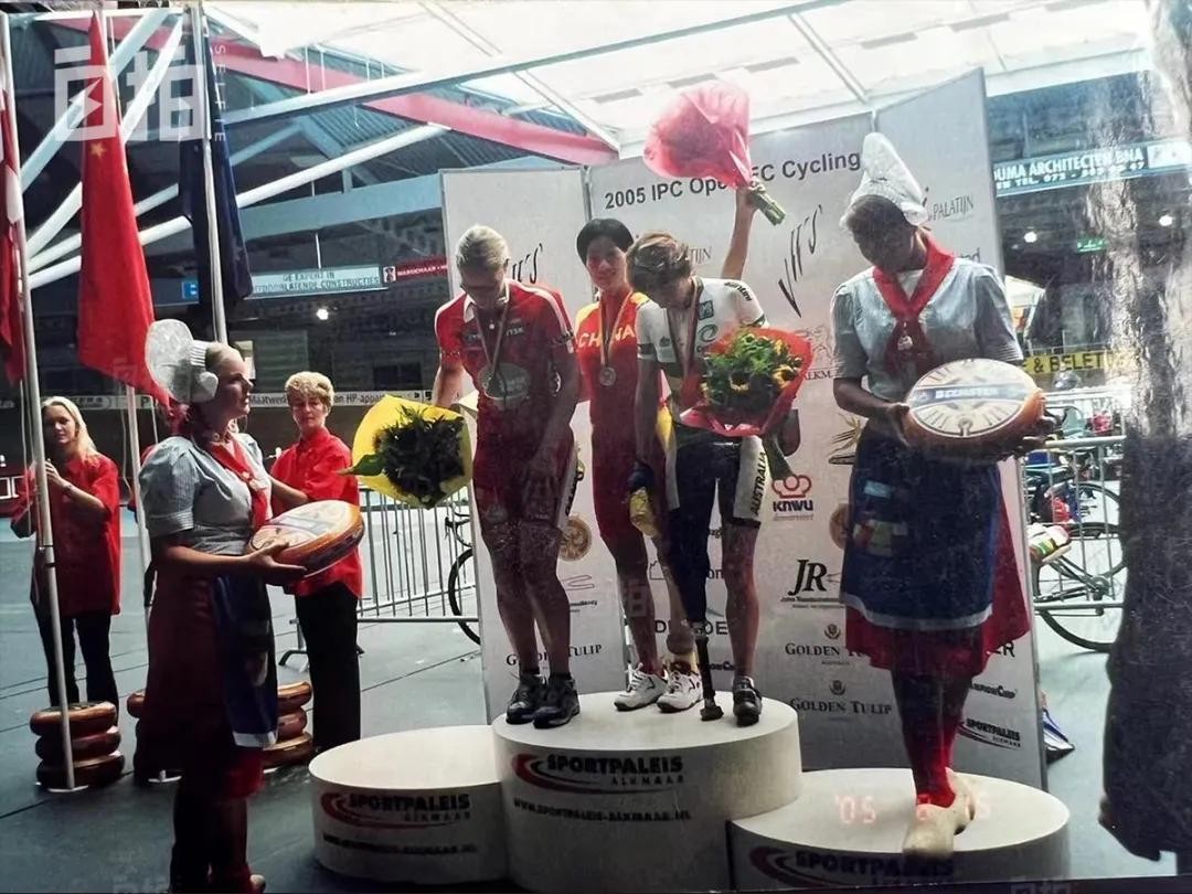 进入国家队没多久,我就参加了2003年在捷克举办的残疾人自行车世锦赛。500米是我的强项,但我之前从来没参加过国际比赛,看到那么多实力很强的对手,心里非常紧张。我告诉自己,什么也不要想,只要往前冲。没想到,第一个上场的我,比出了个人历史最好成绩,也打破了世界纪录,后面的选手都没有超过我。站在冠军领奖台的那一刻,我的腿一直在颤抖,心里五味杂陈,只觉得,像做梦一样,人生真的好神奇。