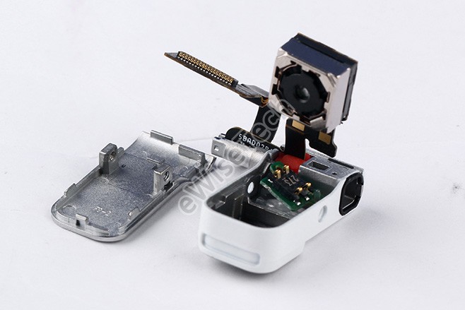 180度翻转摄像头模组,摄像头外防护组件采用金属注射成型工艺。整个组件采用两颗T4螺丝固定。模组内集成一颗1300万像素摄像头和一颗双LED闪光灯小板。荣耀7i由于采用了正面全玻璃覆盖的设计,所以要求翻转摄像头模块厚度要更低,相比于OPPO N1系列的线缆转轴的传统设计,荣耀7i则采用了柔性电路板连接设计。1300万像素摄像头使用了索尼IMX214感光元件,拥有5片高硬度镜片,F/2.0光圈,支持1080P全高清立体声摄像等功能。