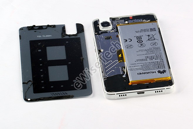 7i内部采用共19颗十字螺丝固定,器件布局方面与荣耀7非常相近。