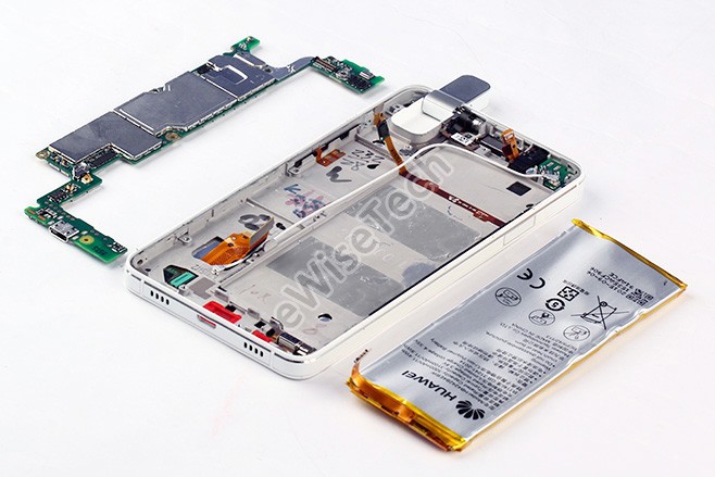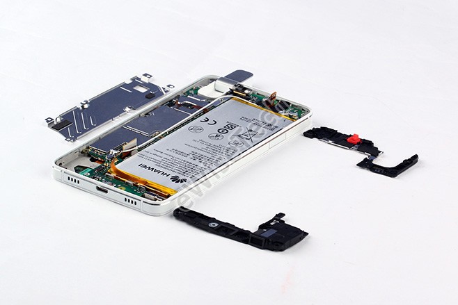 荣耀7i内部结构与荣耀7基本相同,只是7i没有采用一体式金属机身,而是采用了玻璃纤维后盖+中框+前面板的结构,后盖并采用了多层镀膜和内部波点暗纹的设计。整机采用一体铝合金(6061铝)支架,主板屏蔽罩内部采用导热凝胶,更好的帮助芯片散热。荣耀7i配备瑞典FPC公司的侧边指纹识别感应器,功能上与荣耀7 基本相同,但在实际使用中不如正面或背面指纹识别器方便,容易发生指纹识别错误的情况。