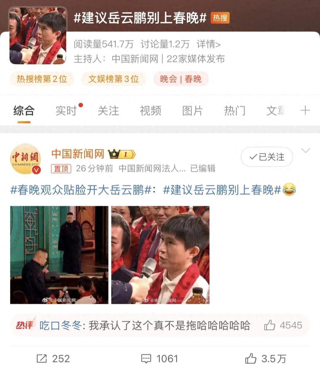 岳云鹏春晚遇‘贴脸开大’!观众高喊‘别来上春晚了’