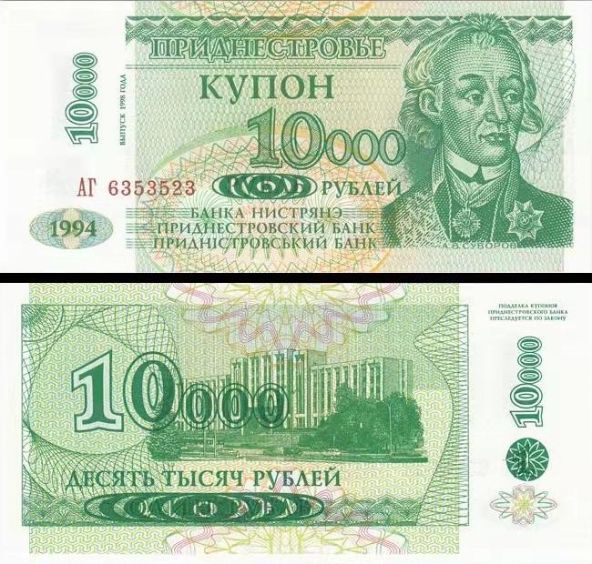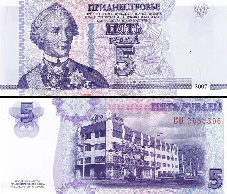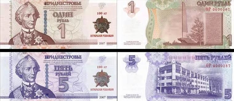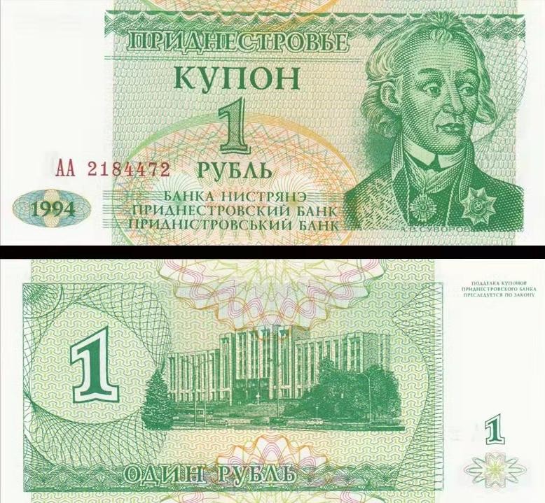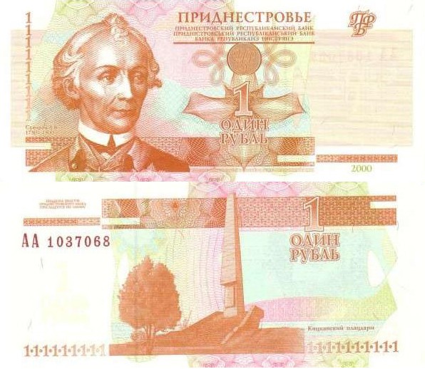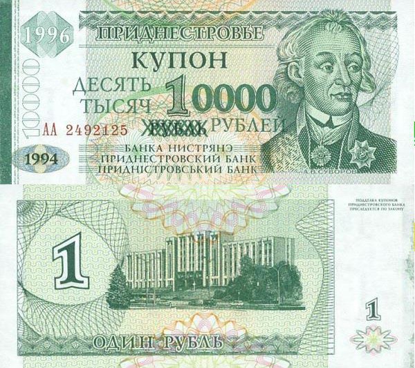 德涅斯特河沿岸共和国独立后,于1994年开始发行第一套卢布纸币。当时德涅斯特当局缺乏印钞条件,于是,该地区银行购买了大量用过的前苏联以及俄罗斯纸币,在纸币上贴上俄罗斯大元帅苏沃洛夫头像的标签,作为“本国”第一套纸币发行。