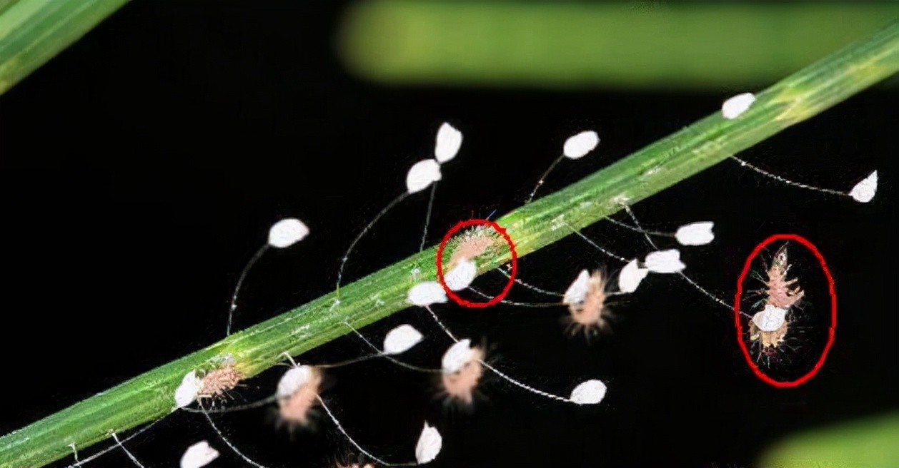 要想知道为什么,其实只需等一段时间,待那芝麻大小的“花苞”绽开后,自然真相大白。里面会爬出一只灰不溜秋的小虫,细看样子还挺吓人:体表长满长毛,头前还呲出一对大“獠牙”—这是草蛉的幼虫,而所谓的“优昙婆罗花”,正是草蛉的卵。