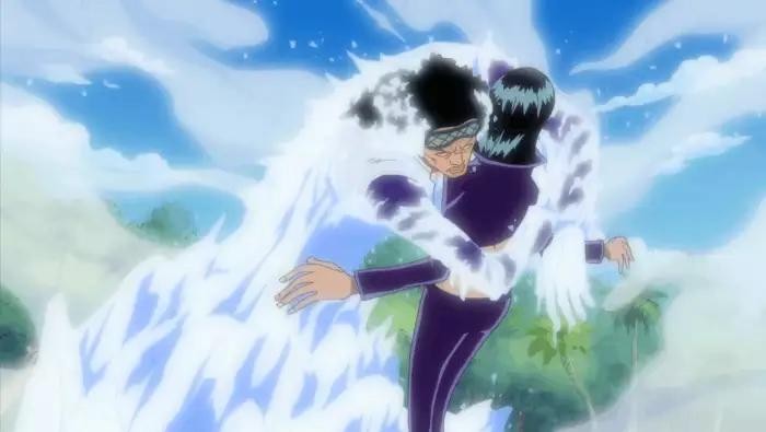 大将青雉在环形岛屿午睡时遇到了路过的草帽海贼团。青雉使用“冰河时代”将海面冰冻,帮助一些遇难的游客顺利逃离孤岛,使路飞等人第一次见识到了海军大将的实力。此后,青雉又以罗宾的过去来考验草帽海贼团的友情,接着他分别与罗宾,路飞,索隆,香吉士等人作战,并将罗宾与路飞完全冰冻。但由于他并无意杀死草帽海贼团的成员,几人的冻伤最后全部被乔巴治愈。