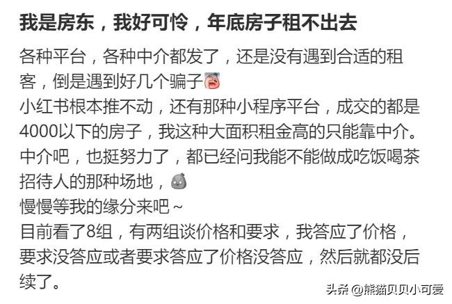 如果看数据没感觉,大家随便去某书上翻,就能看到很多上海房东降租金的帖子。