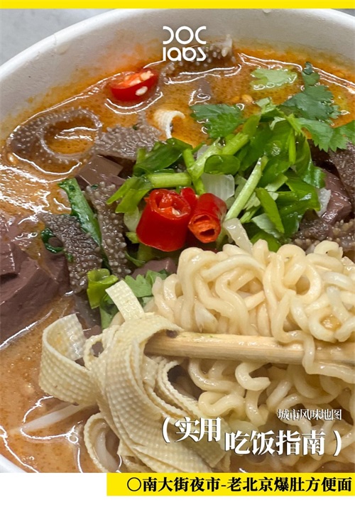 “你的那份爆肚,加份方便面不?”围着围裙的老板娘问。