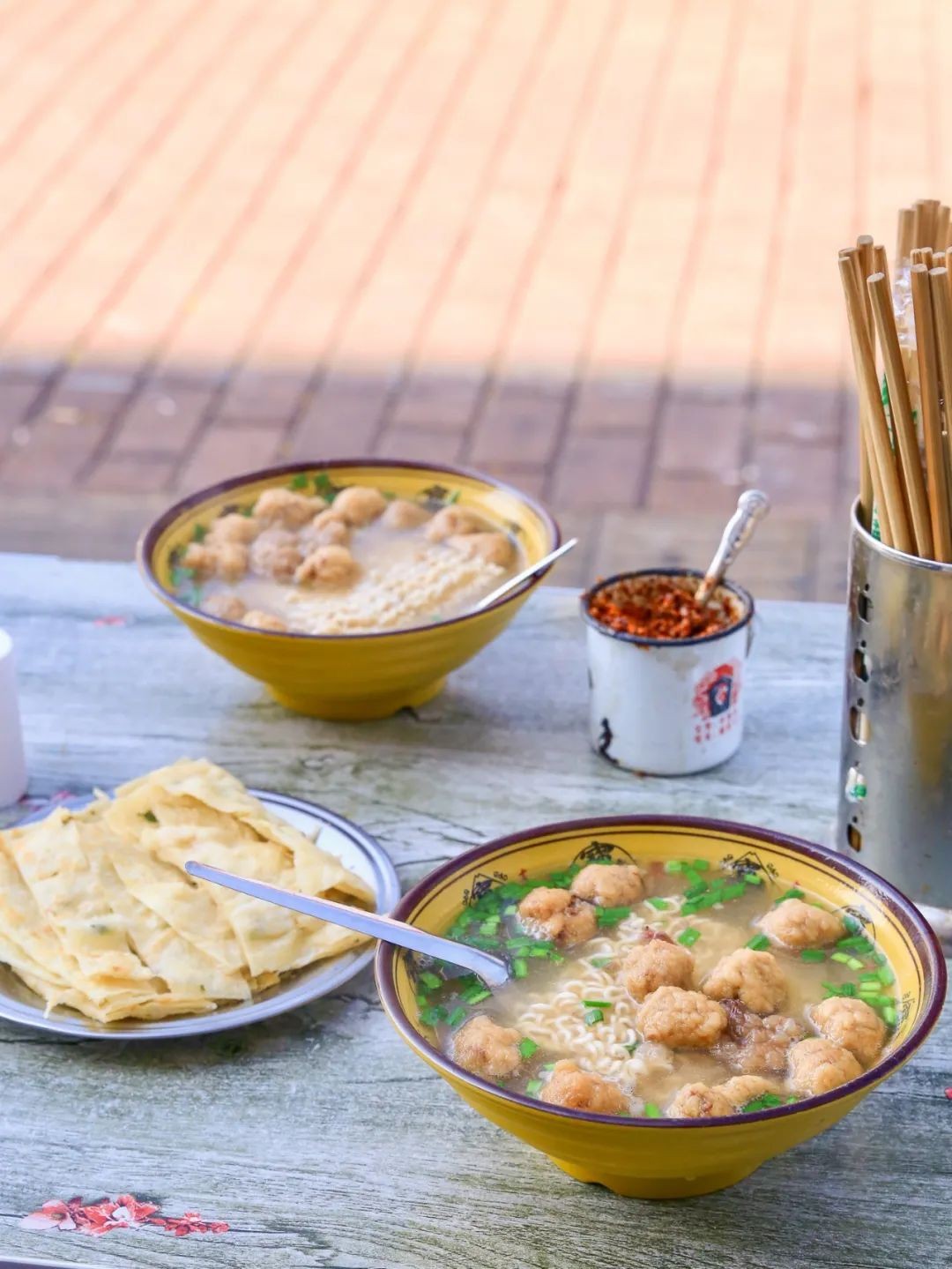 不过肚子的确有些饿了。换好衣服,酒店前台的小姐姐推荐我去一家“丁老大牛肉丸”,说是当地人都喜欢的特色早餐,那边的牛肉汤和羊肉汤都煮得好。听到有热汤,我裹了裹衣服加快了脚步。拐两个路口就到了,早上8点已经不少人在排队。我突然听到前边的人在讨论: