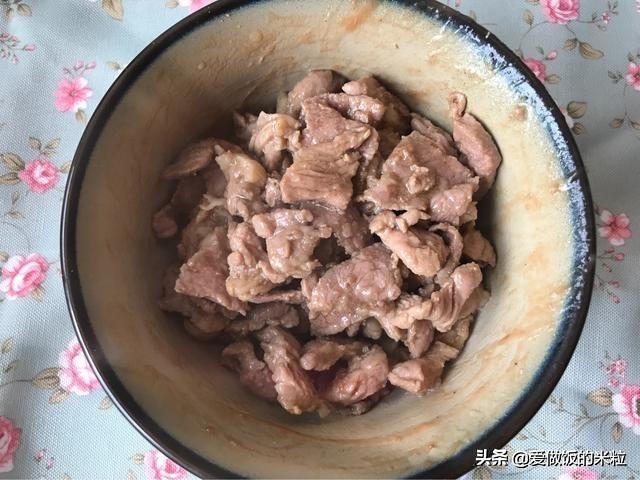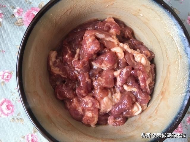 (这样可以锁住肉片里的水分,同时炒制时不会粘连。)