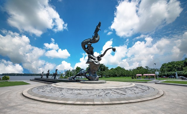 五马渡广场是东晋五马渡江上岸处,也是达摩一苇渡江处。