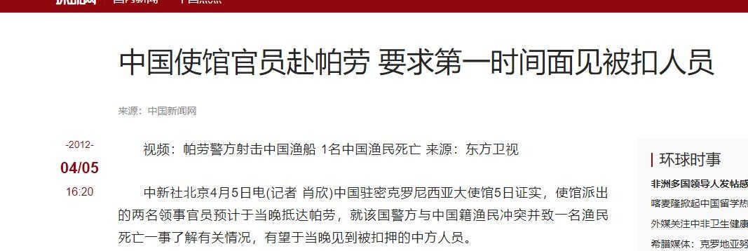 信息来源:中国新闻网,《中国使馆官员赴帕劳 要求第一时间面见被扣人员》