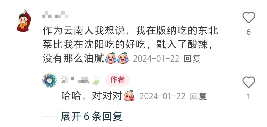 同样从西双版纳回到北京的米利暗也讲述了自己的版纳过年感受:落地后,迎接她的除了雨林风情和傣味美食,还有趋近饱和的东北冲击。她的原话是: