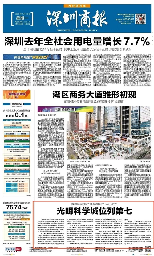深圳特区报深圳光明科学城居全国科技城第七坂雪岗和宝龙科技城同时上榜百强
