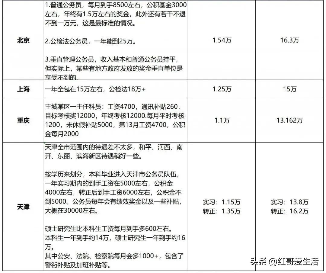 全国公务员薪资待遇一览表