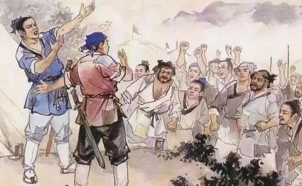 陈胜见时机已到,赶紧站了出来,对大伙说道,咱们大伙要去戍边的,现在大雨导致迟到,迟到是要杀头的(实际上秦律并没有这样规定),而且咱们队伍的将尉全死了,一场连坐的大罪也逃不掉了(实际上包庇罪犯才有连坐)。即使不杀头,戍边打仗也是九死一生。既然未来没什么活路,横竖都是命如草芥地简单一死,那么还不如趁着现在干点惊天动地的大事,然后发出了著名的声音“王侯将相宁有种乎”,难道王侯将相天生就比我们穷苦出生的人高贵吗?