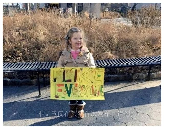一位孤儿小女孩举着写有“我喜欢每一个人”的牌子,这个简单的行为传达出对世界的爱和希望。