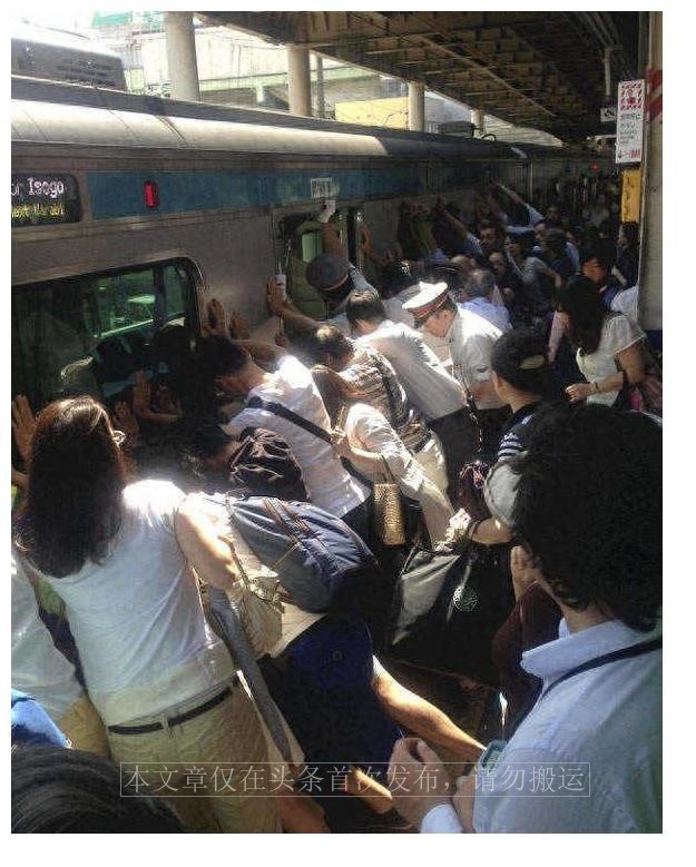 当一位乘客的脚卡在地铁缝隙中,周围的人们齐心协力,共同推动地铁,帮助她获得自由。