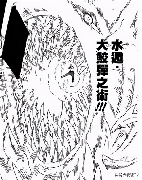 出自《阵之书》261页,A级中远距离攻击型忍术。水鲛弹的升级版,威力和体型更大,并且鲨鱼可以吸收对手的忍术和查克拉转化为自己所用。